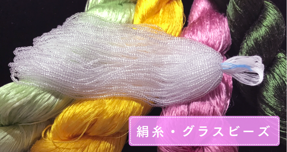 光沢のある絹糸とグラスビーズを使う刺繍です。専用の道具を使い繊細な表現ができます。